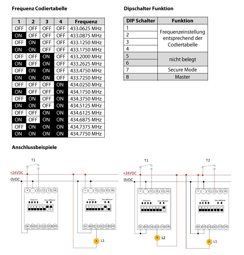 Bei Auslieferung der Funk-Relais ist bei den Modulen noch kein Sender eingelernt. Die Frequenz sowie der Master- und Secure Mode müssen nach gewünschten Anwendungsfall einstellt werden!
